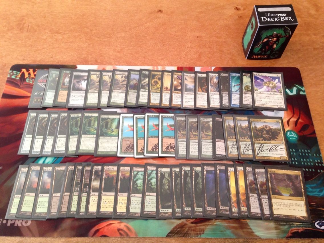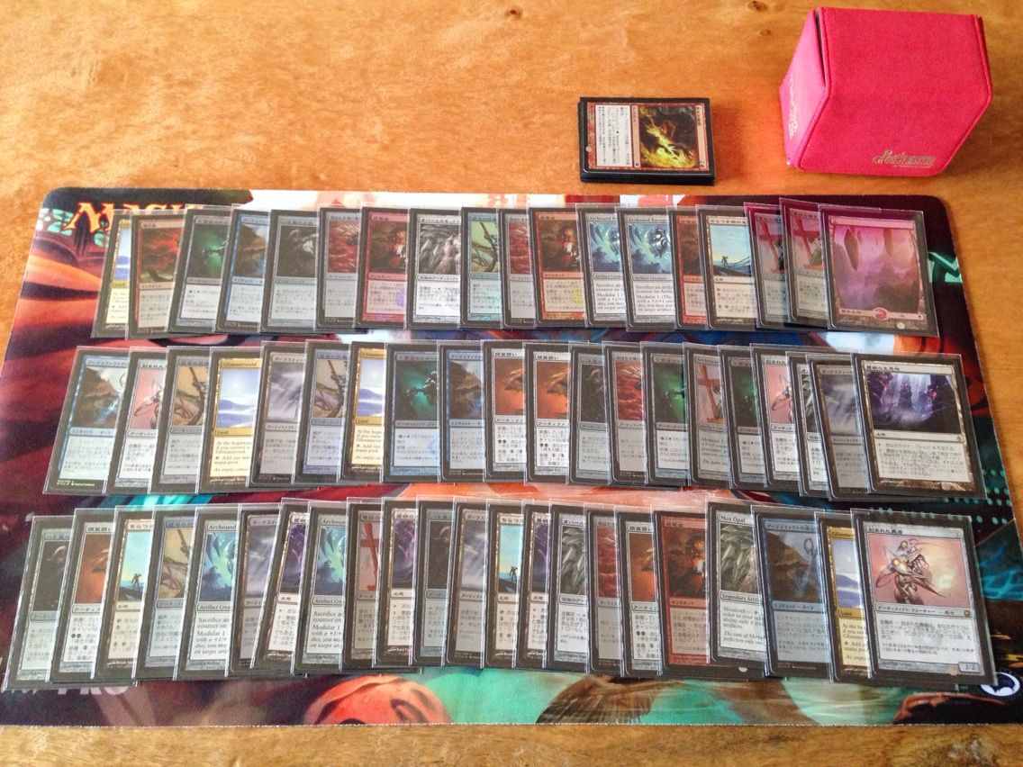 というわけで、レガシーを組んだ後に余ったパーツで組めたモダンデッキを記念撮影。使う当てもなく組んだデッキですが、せめてその勇姿(?)をとどめておきたくて……!
