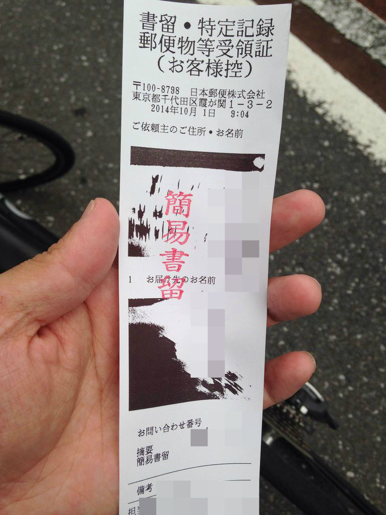 それでは、こちらも簡易書留で送らせて頂きます。