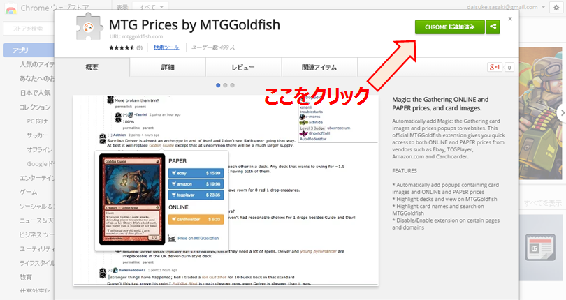 mtgGoldfish (http://www.mtggoldfish.com/)を訪れたらメニューからChromeのエクステンションを探します。